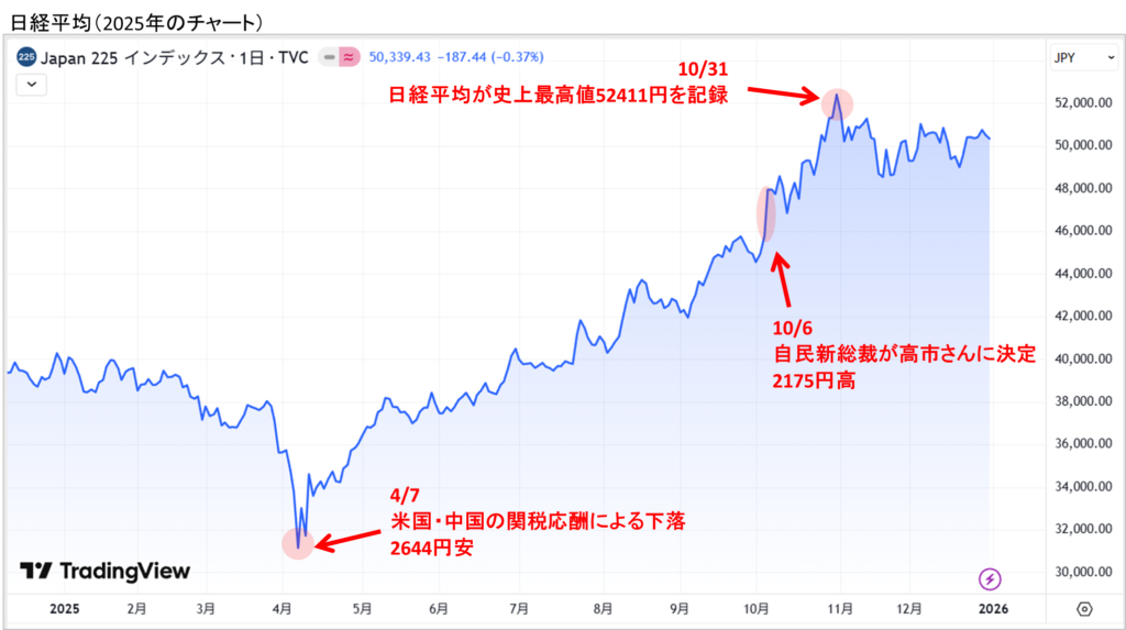 今年は高市政権に代わってからの上昇が大きく、皆さんも年後半の追い上げが猛烈な1年だったんじゃないかと思います。